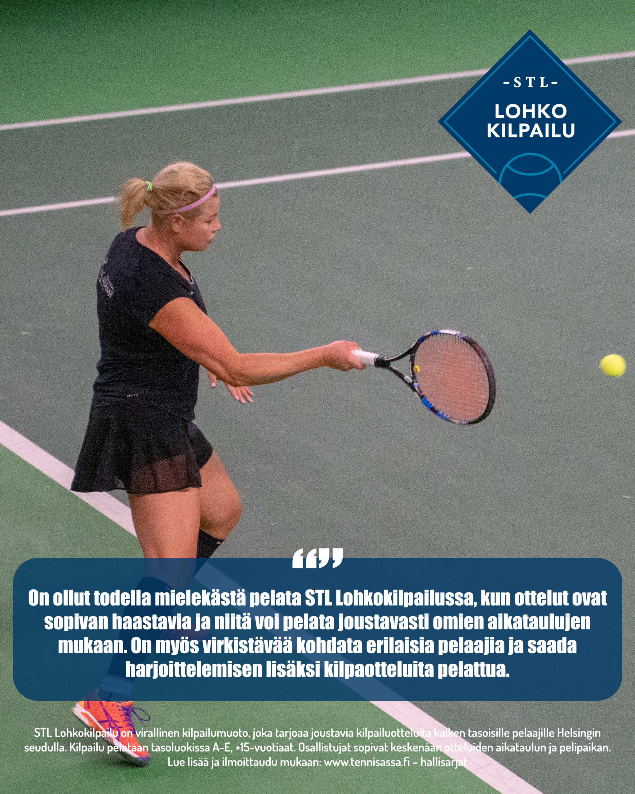 Kysymyksissä STL Lohkokilpailuun liittyen olethan yhteydessä stllohkokilpailu@tennis.fi . STL Lohkokilpailun säännöt löydät kilpailumääräyksistä täältä.