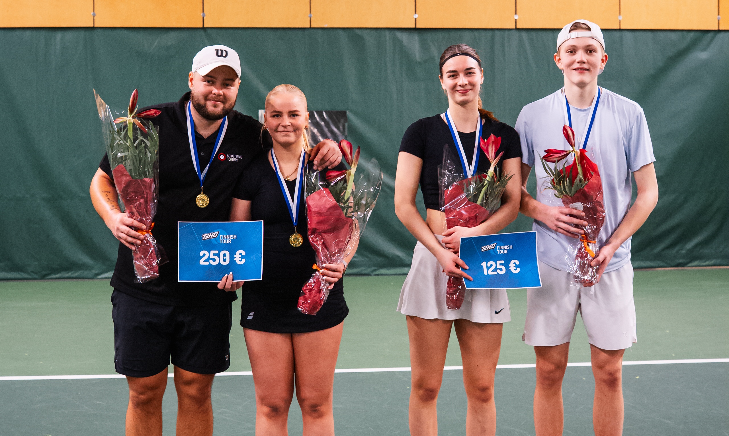 SM-kilpailuiden, 9. TEHO Finnish Tour, ensimmäiset kultaiset mitalit jaettiin lauantaina. Nelinpelin Suomen mestareiksi kruunattiin Alopaeus/Martikainen ja Haavisto/Ahti parit. Sekanelinpelissä mestaruutta tuulettivat Tiainen/Virtanen.