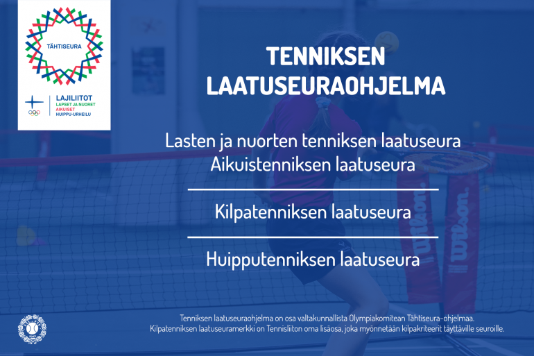 Etusivu > Uutiset > Seurat > Tennisseuroille oma kilpatenniksen laatuseuramerkki – kahdeksan seuraa auditoitu > Laatuseuraohjelma
