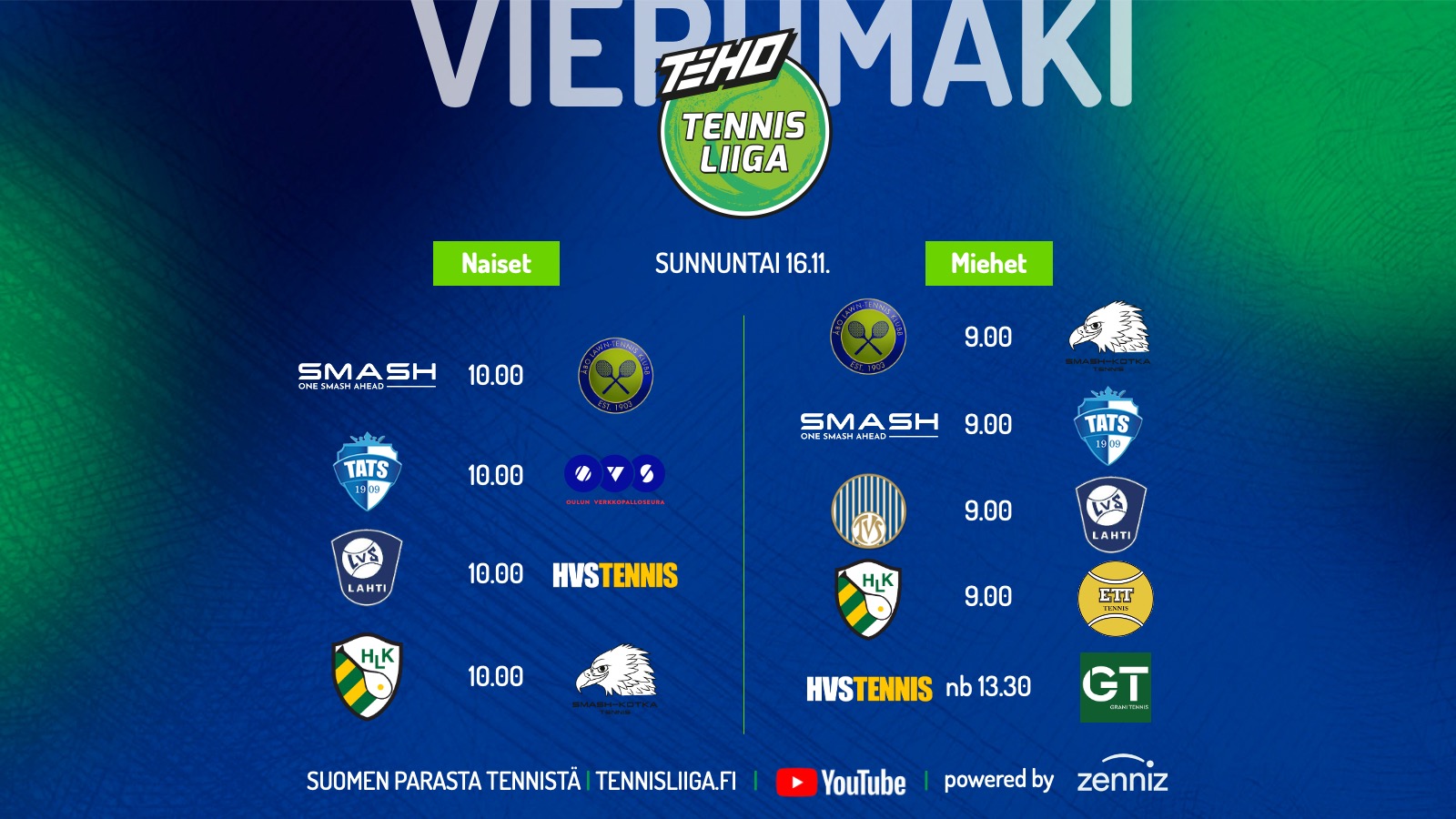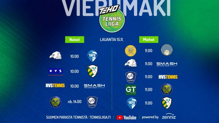 Ottelut ovat nähtävillä Tennisliiton YouTube -kanavan kautta ja tulosseuranta on käynnissä TEHO Tennnisliigan -kotisivuilla.